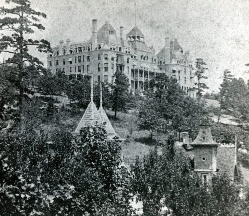 Previous Image Next Image crescent-before-church Crescent Hotel view from Magnolia Street. Crystal Terrace in right foreground. BES 01-014. ESPL Plate 12.