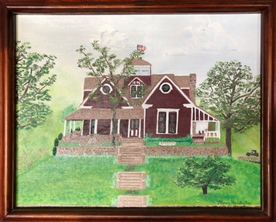 Huddleston, Mary Belding. (n.d.). Painting of Mary Cutter Belding’s home with plaque.