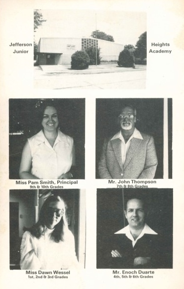 In 1990, Jefferson Heights Junior Academy reduced from a three teacher, ten grade junior academy to a one teacher, eight grade school (Minutes, 1990).