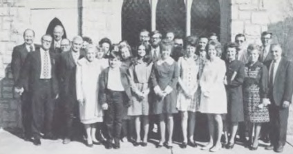 Over the years the members of the church became scattered. Then in January 1969, Mr. and Mrs. G. A. Shain called on Mrs. Bessie Nye, one of the faithful isolated conference members, and they discussed starting a branch Sabbath school in the area. Before leaving, they knelt and prayed earnestly that God would bless their efforts by providing a place for them to meet. There happened to be a family that was wanting to settle in the Gentry area and was contacted by the Shains about this time. They were impressed they should settle near Sulphur Springs and help establish the Adventist work there. They had been praying that they might be led to a dark territory* where they might work for God. The branch Sabbath school was started and their first service was held June 20, 1969, with thirty-nine people present (Voss, 1969). They began to meet in a store building in Sulphur Springs (Sherrill, 1973). The Lord blessed the efforts of these workers, and they were organized as a company on Sabbath, October 25, 1969, with fifteen charter members (Voss, 1969). This company purchased the building that had once served as the Sulphur Springs bank. The members did a good job in giving the building a facelift. The outside was very attractive and the inside was beautiful as well. They laid wall-to-wall carpet in the sanctuary. They also had two rooms in the back of the building for the children’s divisions (Sherrill, 1973).